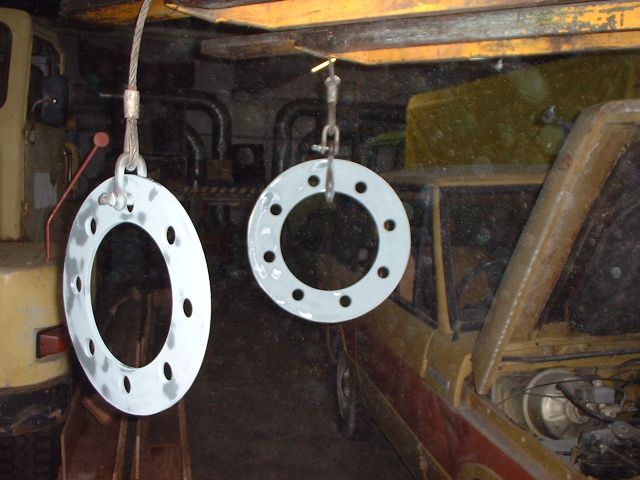 Dazu musste ich aus zwei schrottreifen Felgen Distanzringe anfertigen, weil die Radbolzen der Hinterachse auf Zwillingsbereifung ausgelegt sind.