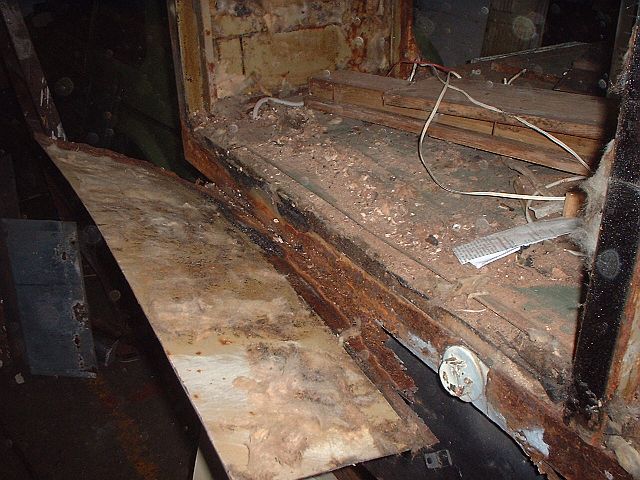 Die Schrauben der Bodenbretter sind völlig unterschiedlich im Zustand. Teilweise neuwertig ist die Schraube daneben völlig verrottet. Teilweise sehen die Schraubenreste wie skurrile Kunstwerke aus.
