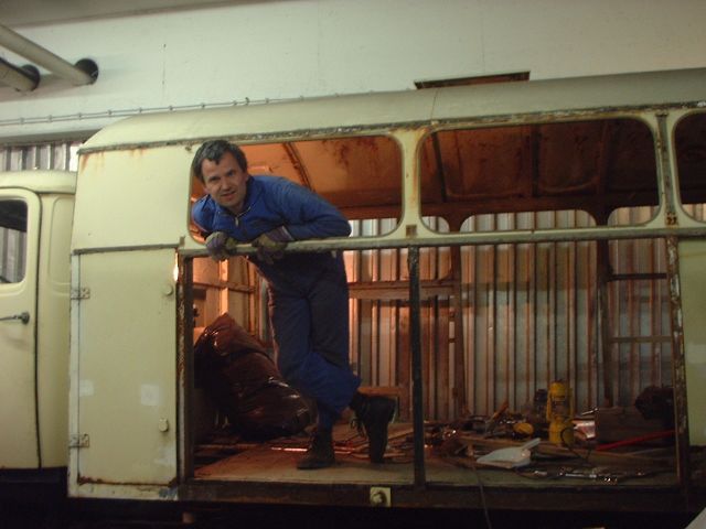 Im Winter 2006/07 ging es dann los mit der Instandsetzung. Die grösste Baustelle ist zweifellos der Koffer, aber auch das Fahrerhaus sowie einige technische Komponenten werden Arbeit bereiten.
