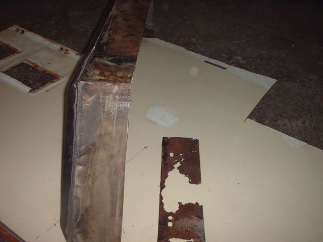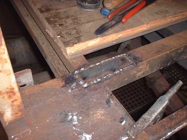 Momentan wird ein Querträger nach dem anderen geflickt. Haben die Dinger oben Rostlöcher, sind sie innen neuwertig. Deswegem ist es einfacher, rostige Stellen rauszuschneiden und die Träger wieder zuzuschweissen, als ganze Träger zu ersetzen. Zumal ich die Träger kaufen müsste und das 4mm-Blech aus dem Schrottcontainer vom Nachbarn für lau bekomme. Trotzdem ist die viele Schleiferei ätzend. Immerhin: das Ergebnis kann sich sehen lassen.